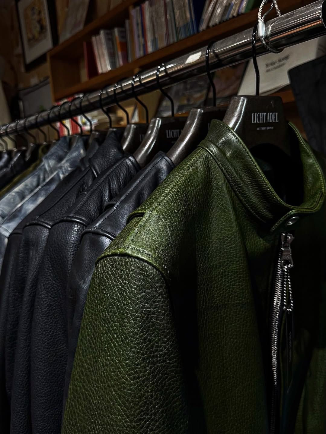 レザージャケットの新作受注はもちろん、店頭にてご購入いただけるジャケットもございます。